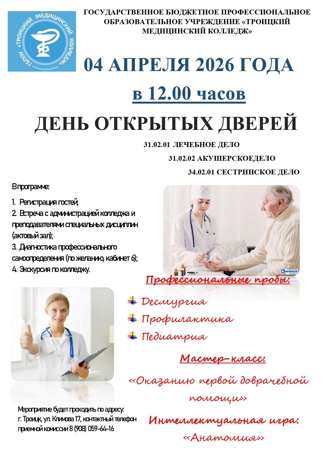 День открытых дверей – это реальный шанс заглянуть в свое будущее, то есть примерить на себе профессию фельдшер, медицинская сестра и представить себя примерно года через три.